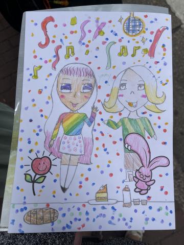 在開聖誕派對,很高興,很快樂。有我喜歡的音樂和朋友一起跳舞