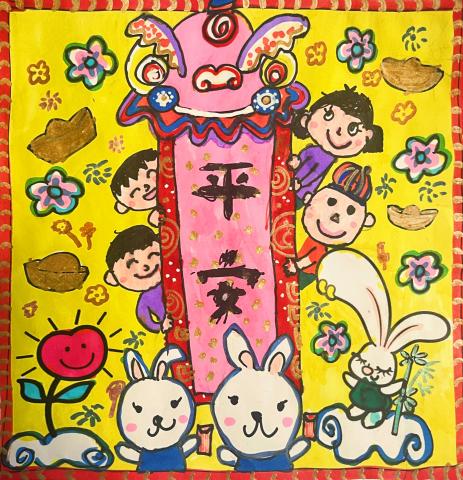 我的一家人和小兔子一起在舞獅頭,寓意平安幸福。希望將這份喜悅和大家一同分享